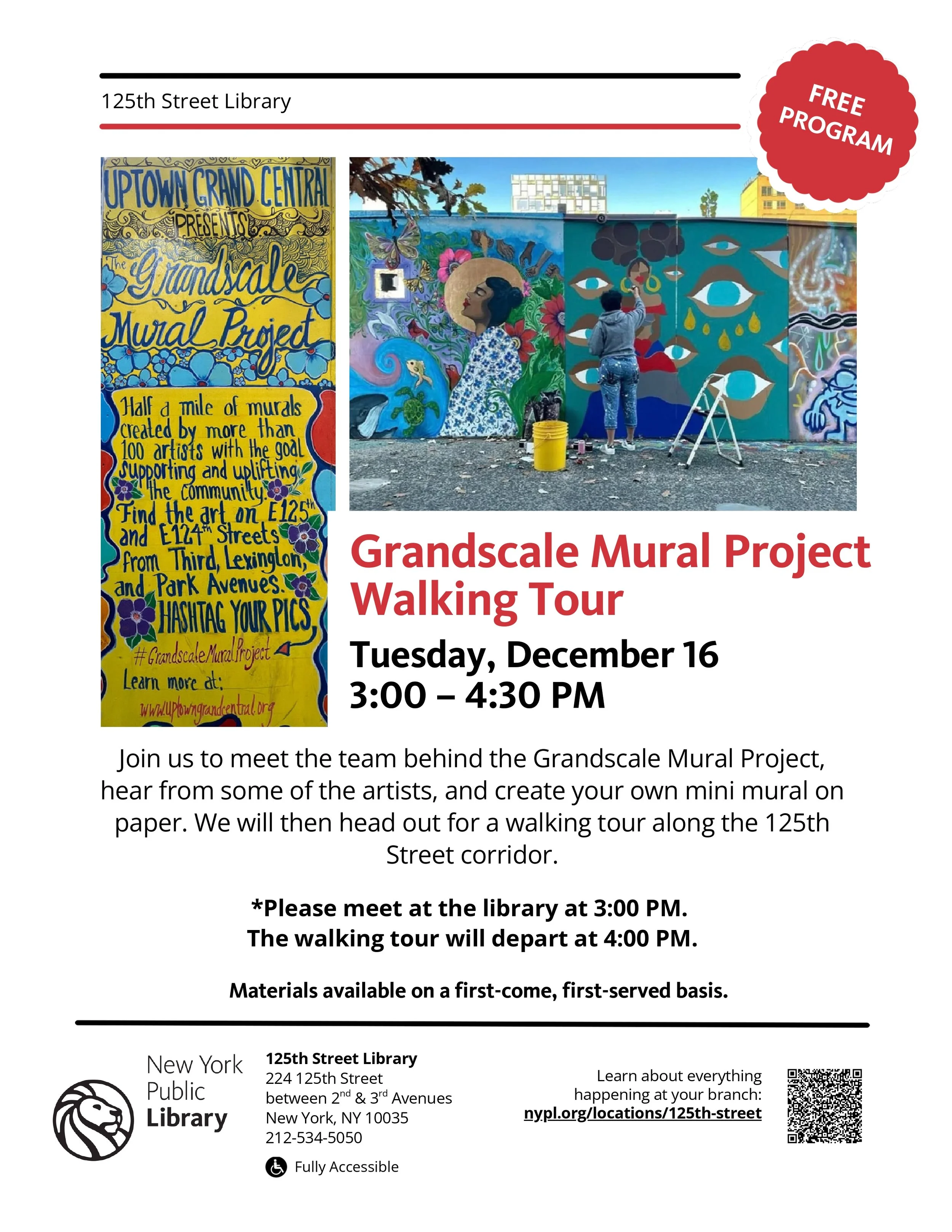 You asked, and we're working with the New York Public Library to make it happen: Join us for a family-friendly Grandscale Mural Project walking tour!
